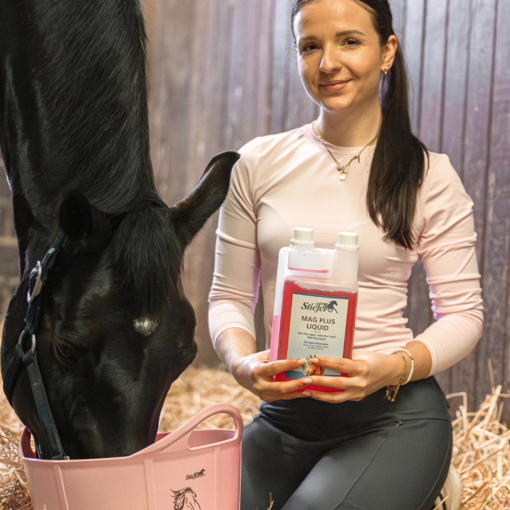 JETZT MIT NEUER REZEPTUR. Stiefel Mag Plus Liquid wird zur Unterstützung in Belastungssituationen und zur Steigerung der Belastbarkeit gefüttert. Die wirkungsvolle Kombination aus Magnesium, Tryptophan und Zink kann sich bei fütterungsbedingten Mangelerscheinungen positiv auf gereizte, nervöse oder unruhige Pferde auswirken. Dadurch können Belastbarkeit, Konzentration und Leistungsbereitschaft gefördert werden.