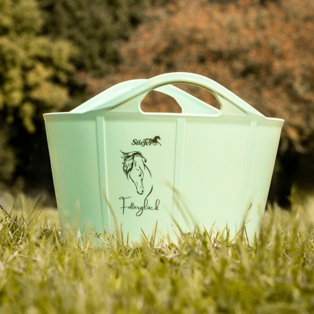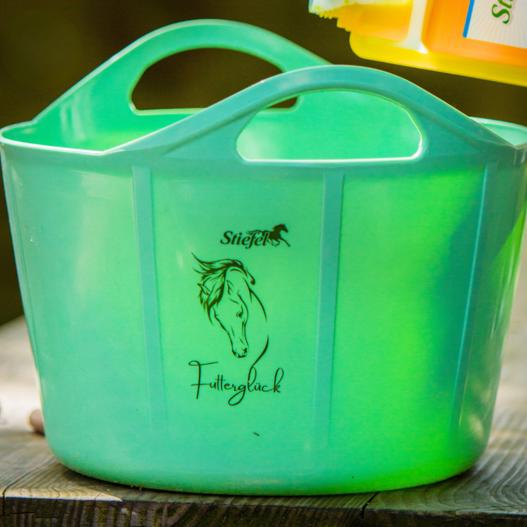 Die Stiefel Flexischale mit 17 l Fassungsvermögen eignet sich ideal zur Futter- oder Wassergabe im Stall und auf der Weide, aber auch auf dem Turnier. Durch ihre vielfältigen Einsatzmöglichkeiten ist die Stiefel Flexischale der perfekte Begleiter im Stall und unterwegs. Da die Stiefel Flexischale aus flexiblem Kunststoff besteht, kann das Verletzungsrisiko deutlich verringert werden.