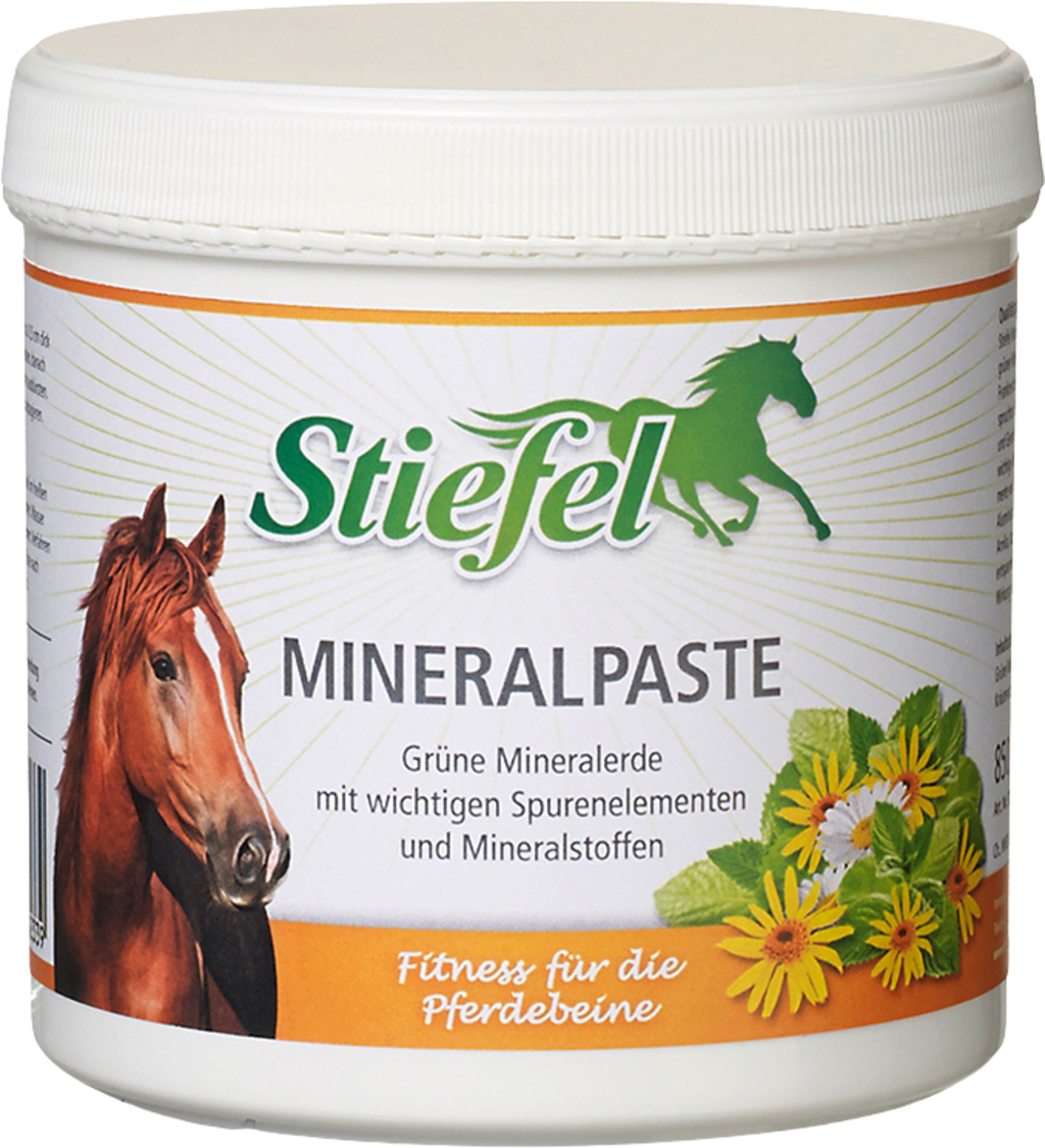 Stiefel Mineralpaste ist eine grüne Mineralerde zur Regeneration von beanspruchten Sehnen, Muskeln, Bändern und Gelenken. Stiefel Mineralpaste enthält wichtige Mineralstoffe und Spurenelemente, wie Calcium, Eisen, Kalium, Silicium und Aluminium. Durch den Zusatz von Arnika, Kamille und Menthol kann eine entspannende und regenerierende Wirkung erreicht werden. Stiefel Mineralpaste kann sowohl kalt als auch warm angewendet werden.