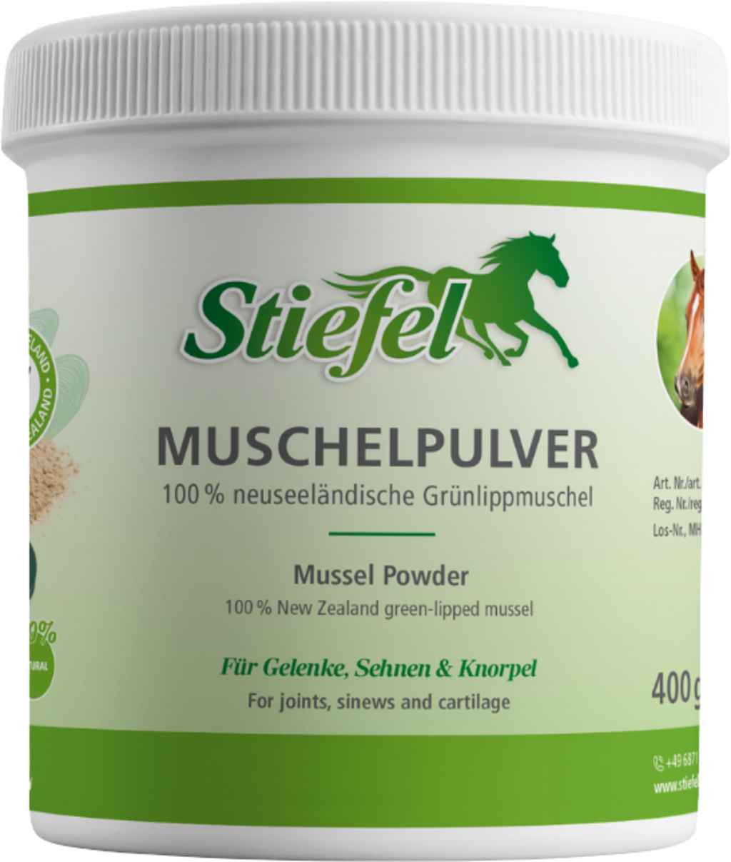 Stiefel Muschelpulver besteht aus 100% reinem Pulver der neuseeländischen Grünlippmuschel. Das Grünlippmuschelpulver kann sich positiv auf den Bewegungsapparat auswirken, denn es enthält für das Bindegewebe wichtige Glykosaminoglykane sowie mehrfach ungesättigte Fettsäuren. Der Bewegungsapparat kann unterstützt und ein gesunder Bewegungsablauf gefördert werden.