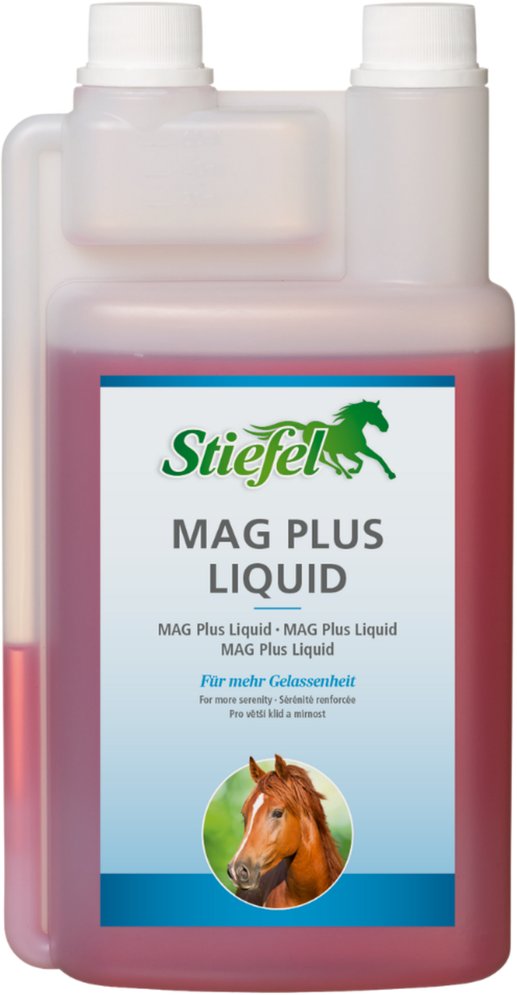 NOW WITH A NEW FORMULA. Stiefel Mag Plus Liquid can be used to provide support during stressful situations and increase resilience. The effective combination of magnesium, tryptophan and zinc can have a positive effect on irritable, nervous or restless horses with feed-related deficiency symptoms. This can promote resilience, concentration and performance.