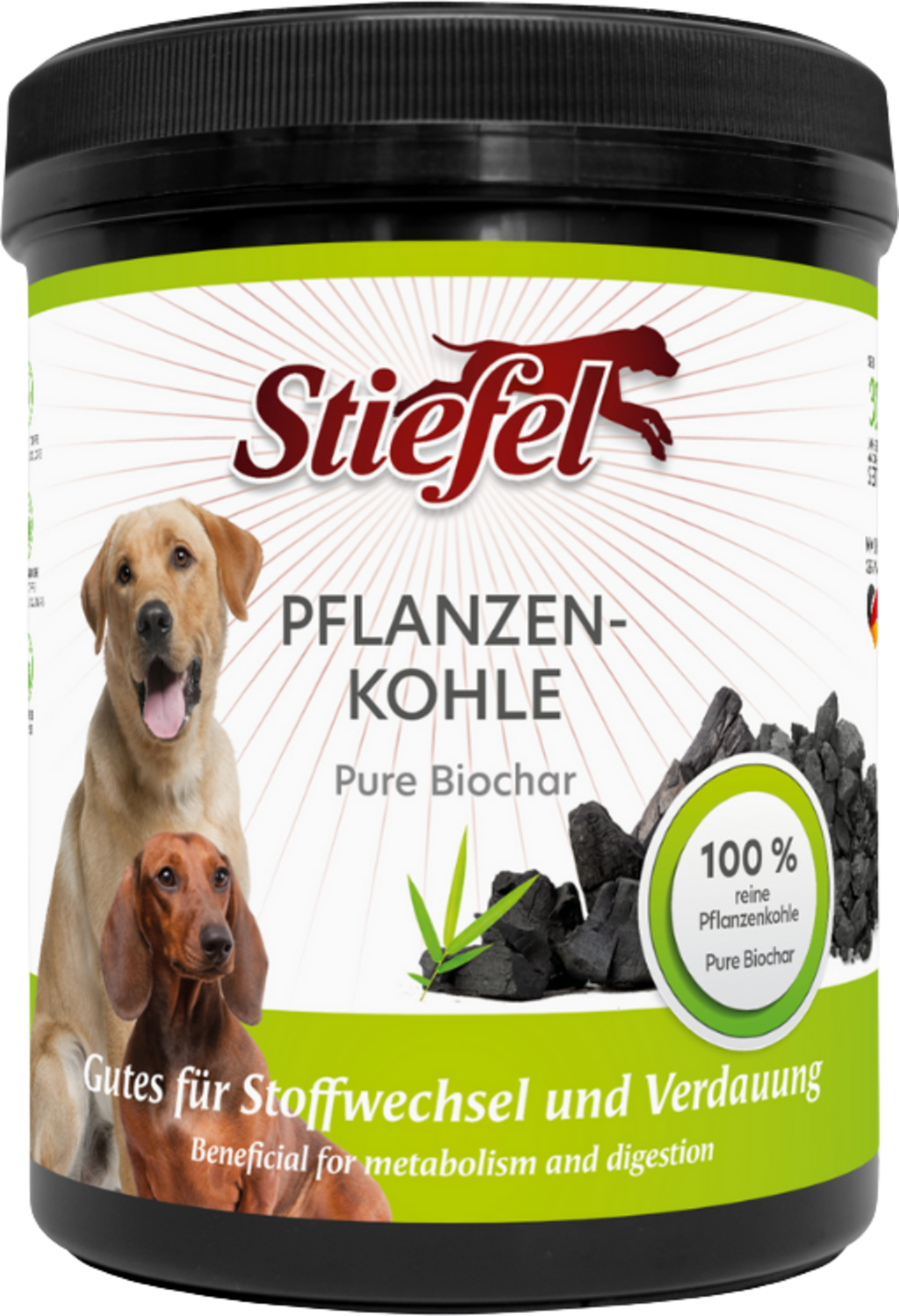 Stiefel Pure Biochar is made from 100% pure plant-based charcoal and can have a positive effect on your dog's digestion. It can support the gastrointestinal tract and promote healthy digestion. It can also support metabolism.