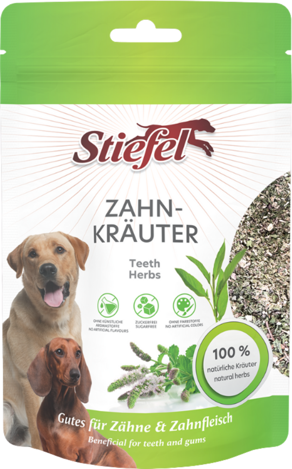 When given as a supplement to your dog's daily food ration, Stiefel Teeh Herbs can help provide natural cleaning and care for your dog's teeth and gums. Good dental care can have a positive effect on the entire body.