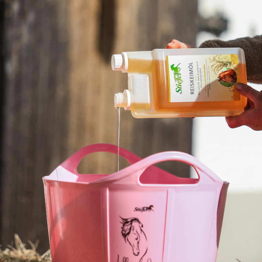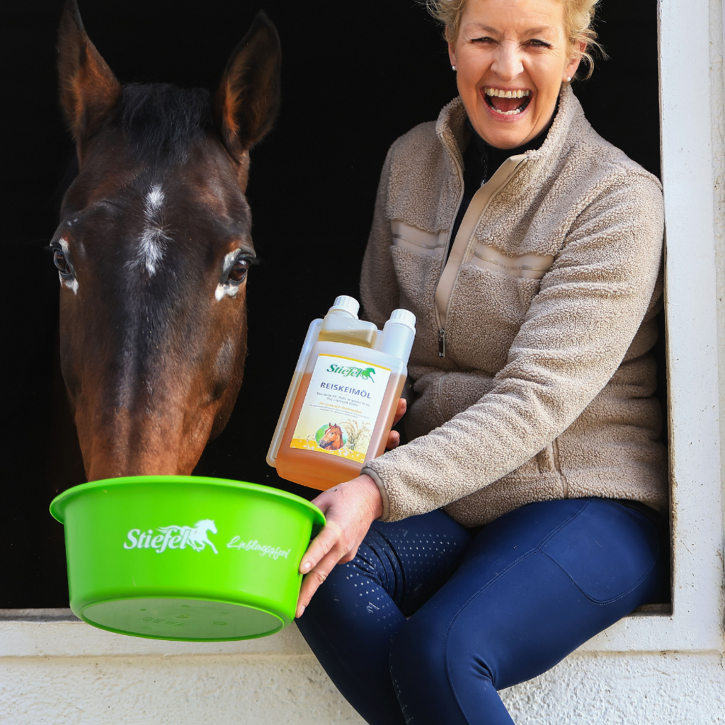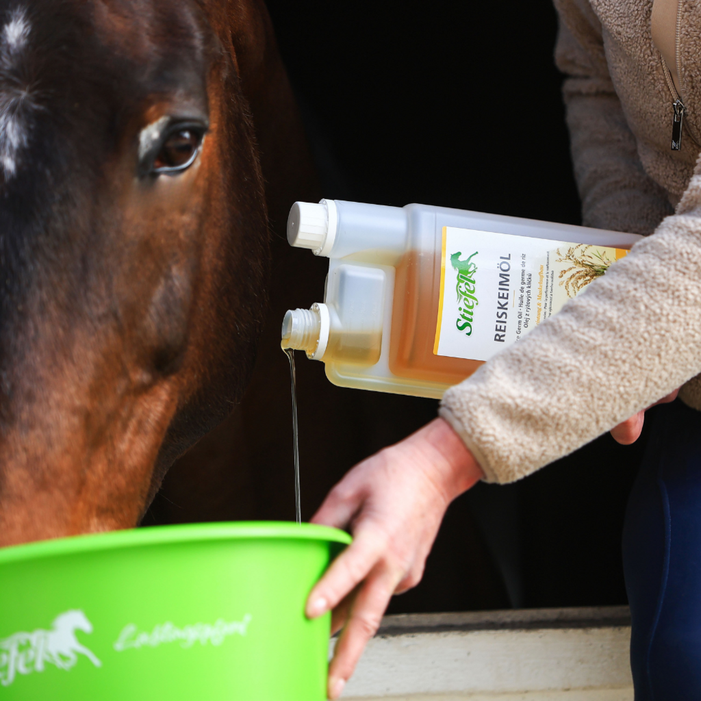 L'huile de germe de riz Stiefel est utilisée pour améliorer la ration alimentaire quotidienne des chevaux de sport et de compétition ainsi que des chevaux à alimentation lourde. L'huile de goût neutre, est riche en acides gras essentiels ainsi qu'en gamma-oryzanol et en vitamine E. Le cheval ne peut pas produire lui-même les acides gras essentiels qui doivent être ingérés par la nourriture. Le gamma-oryzanol peut augmenter le niveau de testostérone et donc les performances. La vitamine E peut empêcher la formation de radicaux libres et a un effet antioxydant. C'est également une vitamine importante pour le métabolisme musculaire qui soutient la régénération des cellules musculaires après l'effort.