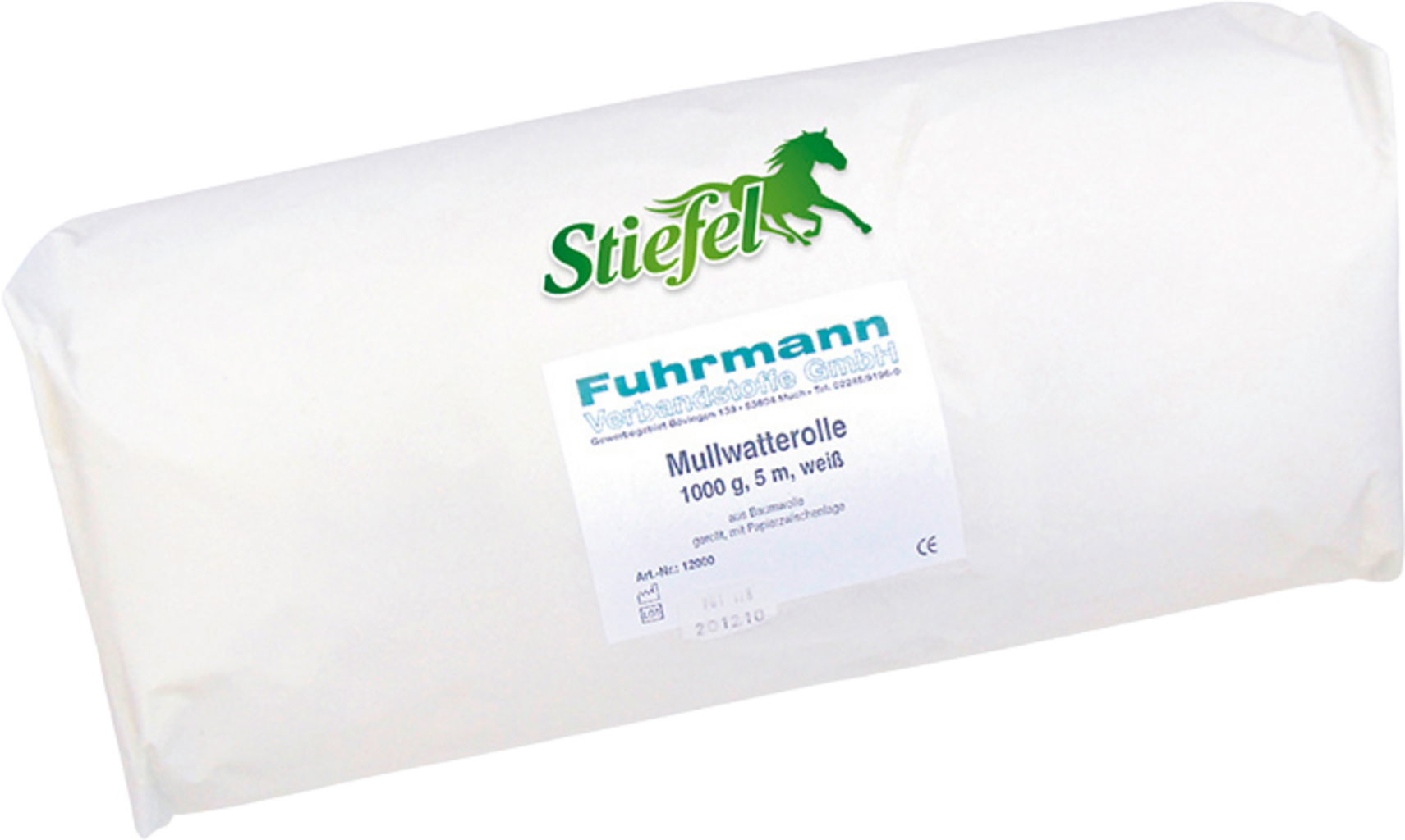 Idéal pour les bandages de toutes sortes.Le coton est recouvert de gaze, et ne laisse donc pas de peluches qui pourraient inflammer ou salir la plaie. Rouleau 40 cm x 500 cm