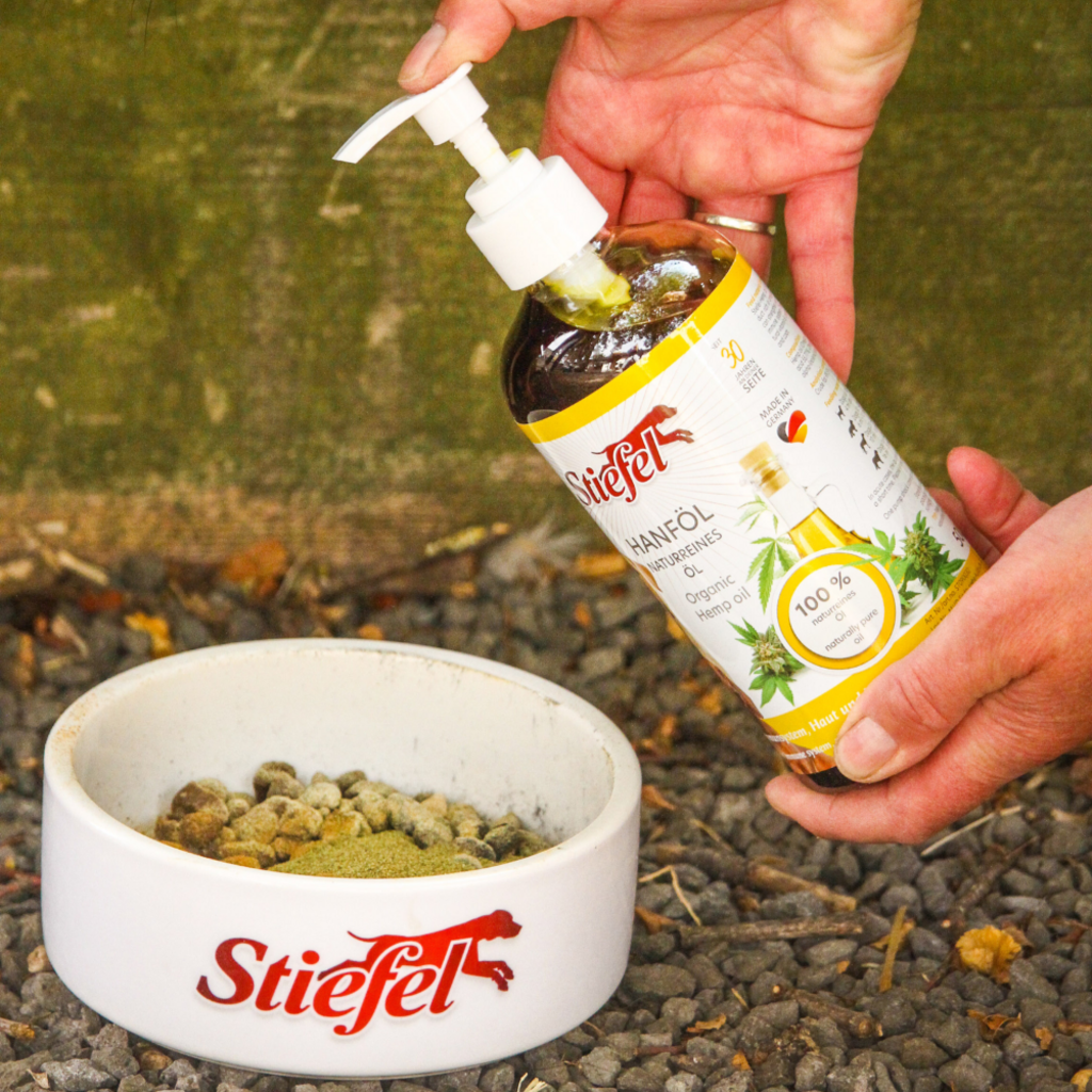 L'huile de chanvre Stiefel peut renforcer le système immunitaire du chien et favoriser les défenses de l'organisme grâce à ses acides gras essentiels. Elle peut également avoir un effet positif sur la peau et le pelage du chien. L'huile de chanvre Stiefel est un produit 100 % naturel, riche en acides gras oméga-3, oméga-6 et oméga-9 ainsi qu'en acide linoléique, acide alpha-linoléique et acide gamma-linoléique. Elle offre ainsi une source précieuse d'acides gras pour les chiens dans toutes les phases de leur vie.