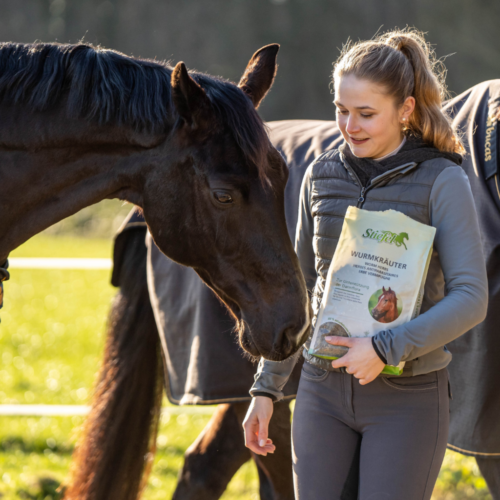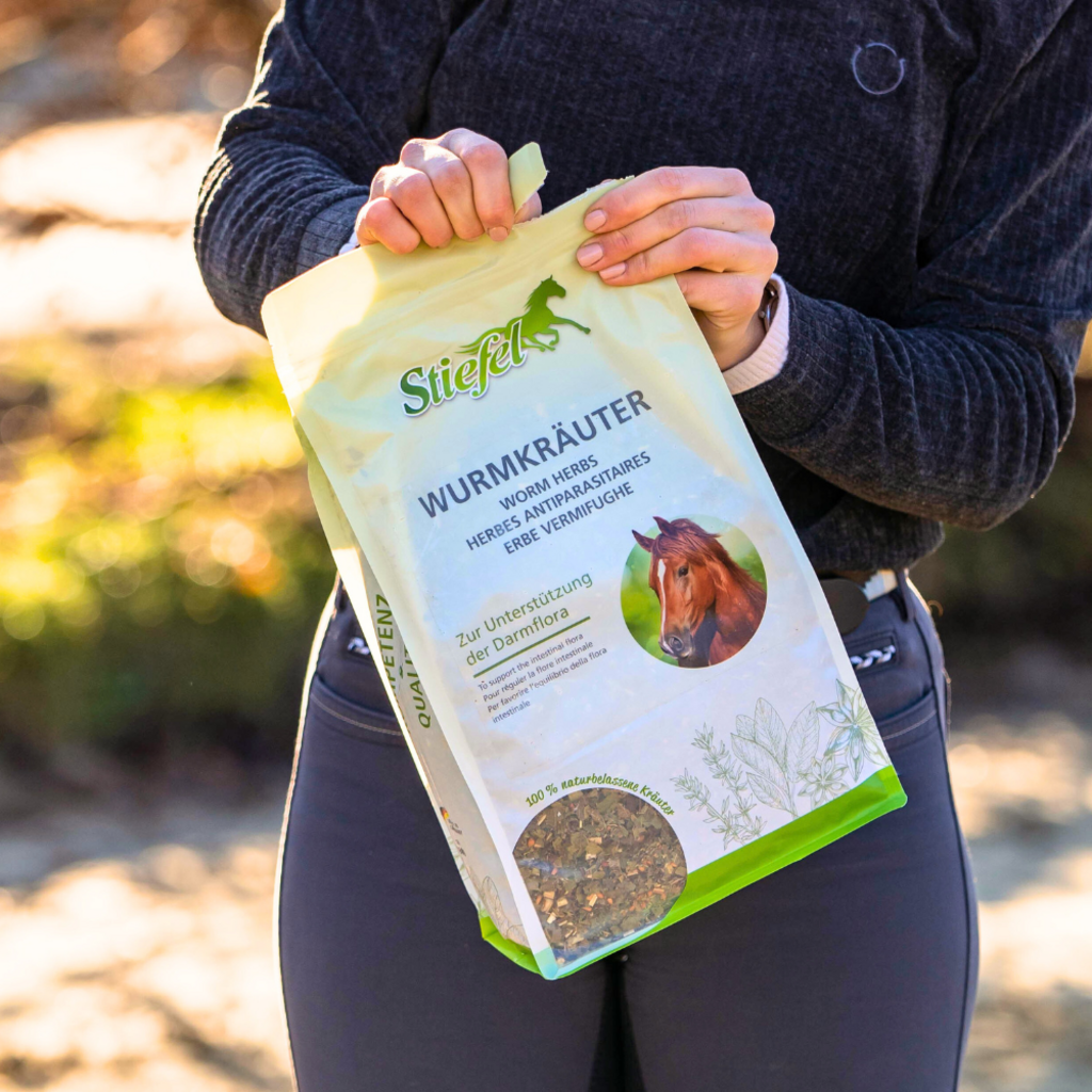 Les herbes sélectionnées contiennent des substances amères et piquantes, qui rendent l'environnement intestinal, désagréable pour les vers. En outre, elles peuvent aider la muqueuse intestinale à se régénérer après une infestation de parasites. Remarque : le mélange d'herbes Stiefel ne représente pas un substitu à un vermifuge classique, mais peut aider l’intestin à renforcer ses défenses naturelles.