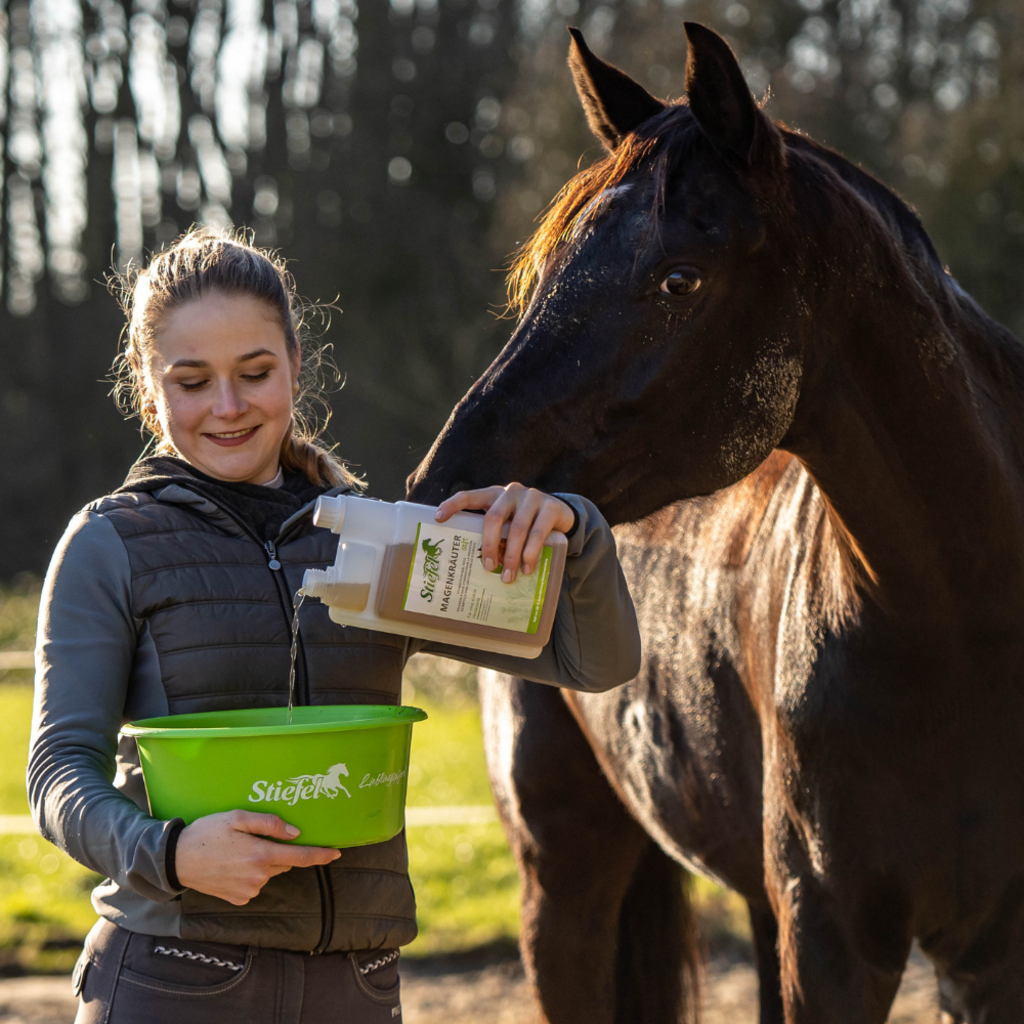 Questa succo di Stiefel è ottenuto da una miscela di erbe naturali senza aromi artificiali studiate per stabilizzare lo stomaco del cavallo. Le erbe contenute possono influenzare positivamente la funzione naturale della mucosa gastrica, ottimizzare la digestione e favorire la normale consistenza delle feci.