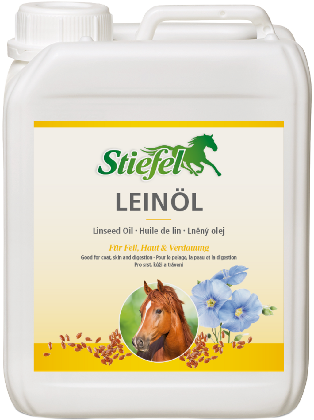 L'olio di semi di lino di Stiefel è un prodotto naturale puro spremuto a freddo, ricco di acidi grassi omega-3, in particolare acido alfa-linoleico (C18:3), vitamina A, vitamina E e vitamina D. L'olio di lino è un prodotto naturale spremuto a freddo. Grazie alla sua preziosa composizione ha un effetto positivo sulla qualità della pelle e del pelo del cavallo e contribuisce ad una sana digestione.