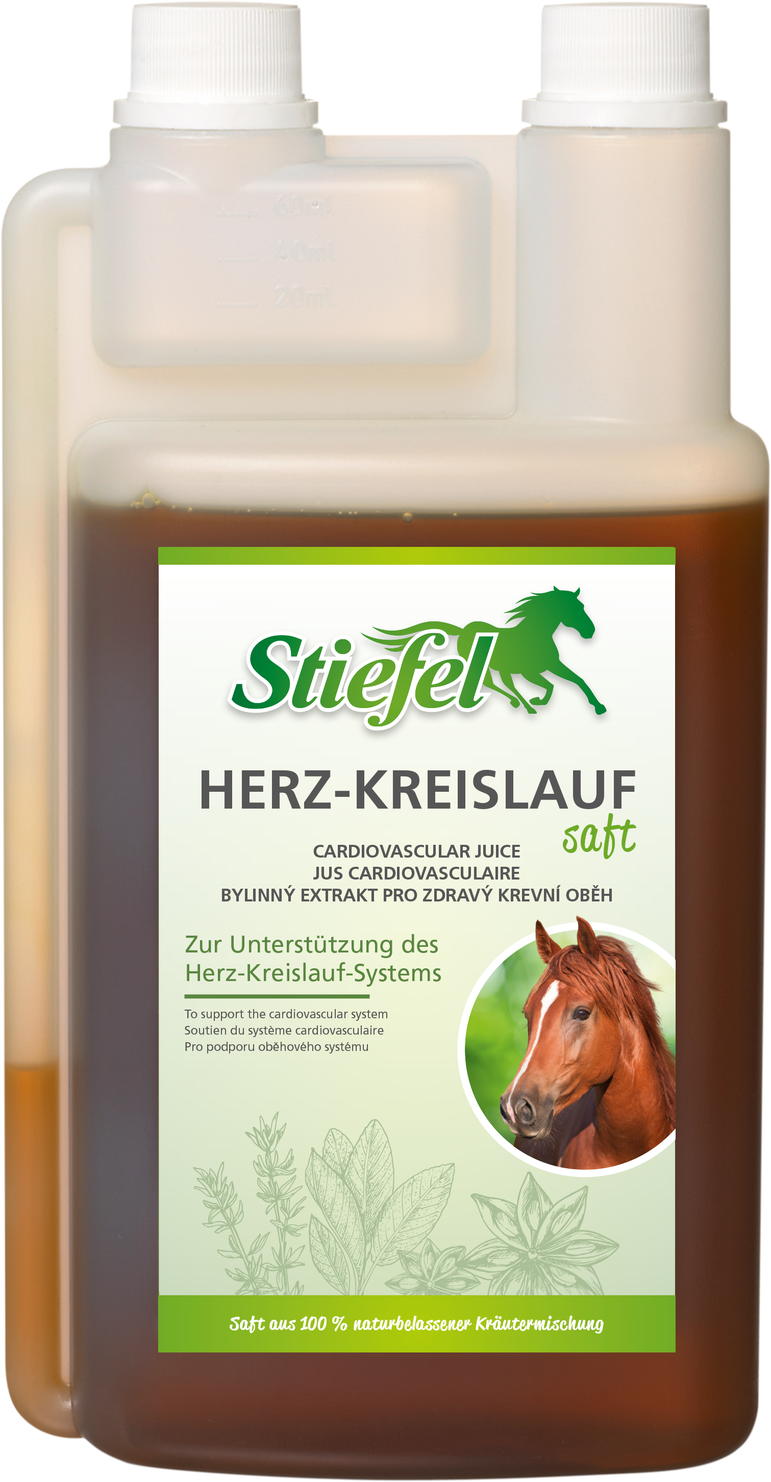Stiefel Cardiovascular juice vsebuje 100 % skrbno usklajena zelišča, ki lahko podpirajo splošno dobro počutje vašega konja in prispevajo k zdravemu delovanju srčno-žilnega sistema. Še posebej starejši konji ali živali v obdobjih povečanih obremenitev lahko imajo korist od harmonizirajočega učinka te zeliščne mešanice.