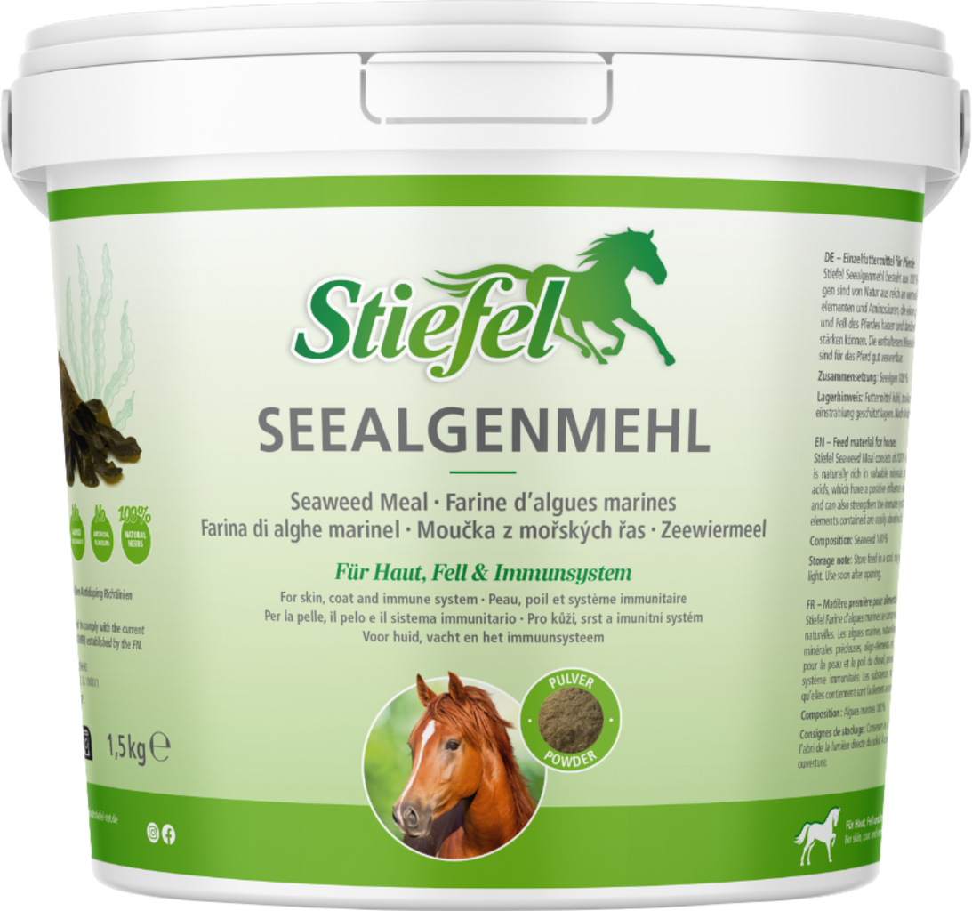 Stiefel moka iz alg je sestavljena iz 100% naravnih morskih alg. Morske alge so naravno bogate z dragocenimi minerali, elementi v sledovih in aminokislinami, ki pozitivno vplivajo na kožo in dlako konja ter krepijo imunski sistem. Minerale in elemente v sledovih, ki jih vsebuje, konj zlahka izkoristi.