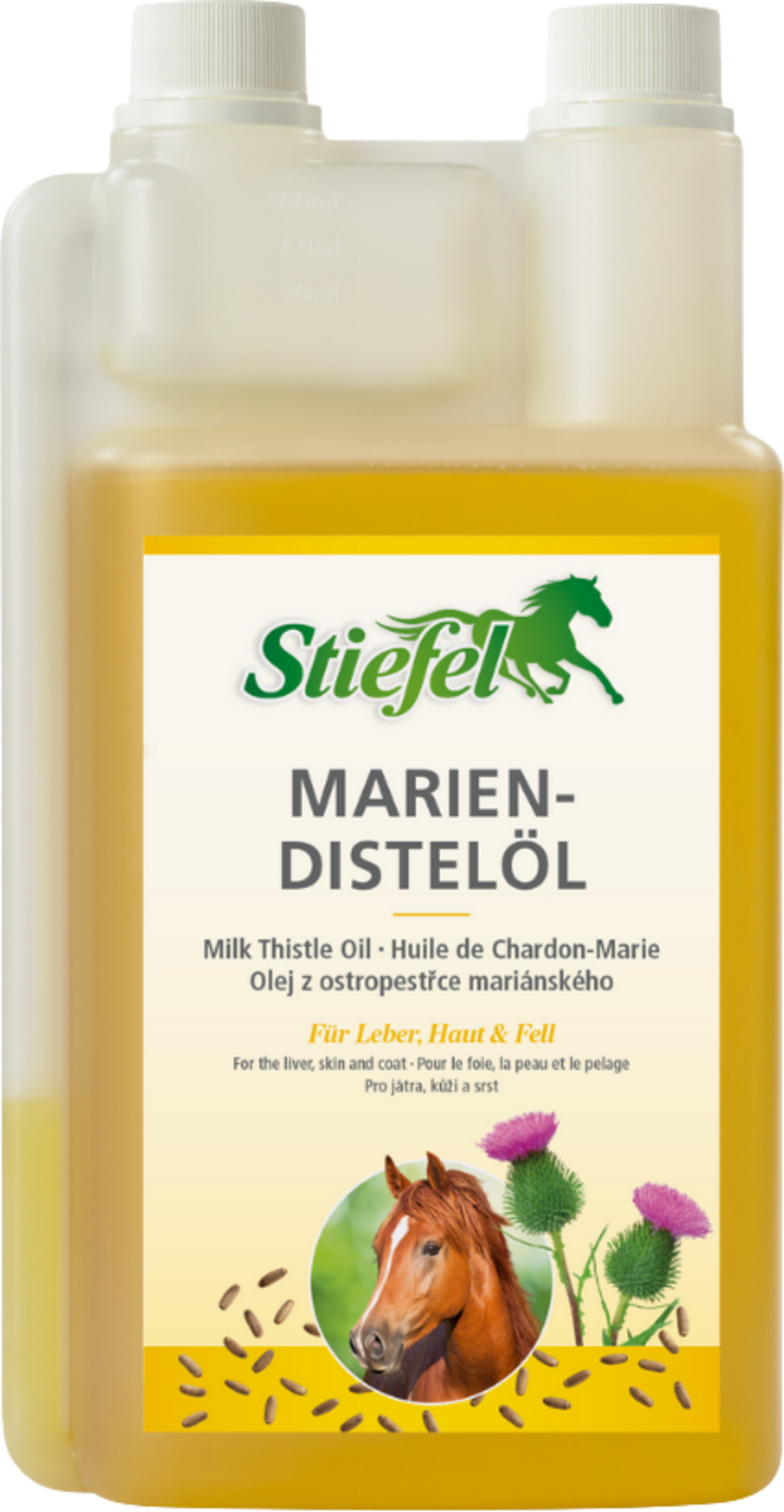 Olje pegastega badlja znamke Stiefel je 100% naravno olje. Olje pegastega badlja lahko spodbudi metabolizem jetrnih celic in tako izboljša zdravje. Olje lahko pozitivno vpliva tudi na kožo in dlako konja.