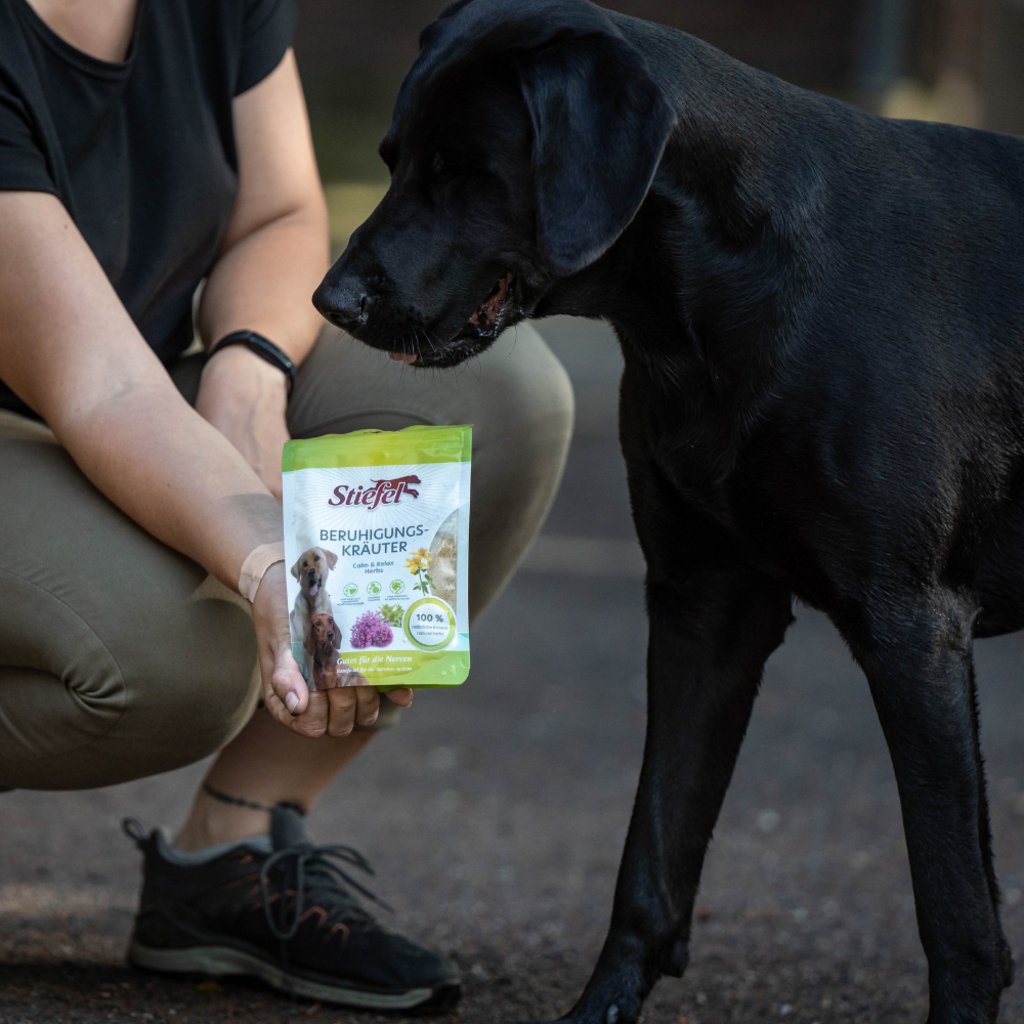 Stiefel pomirjujoča zelišča vsebujejo meliso, šentjanževko in baldrijan ter lahko zagotovijo naravno podporo v posebej stresnih situacijah. Zlasti živčnim in razdražljivim psom so lahko v pomoč.